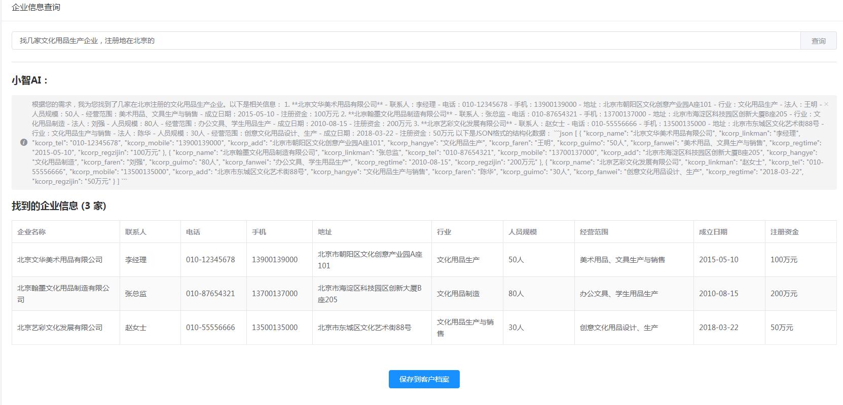 关键词精准挖掘: 只需输入行业、产品、企业规模、地域等关键词,系统即可通过大数据智能分析,瞬间生成一份高潜客户名单。
